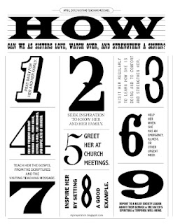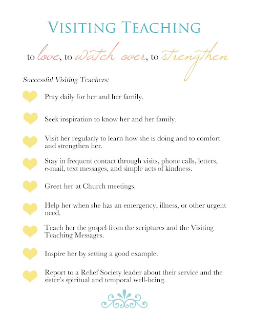 I decided to take the nine points of suggested qualities of a successful visiting teacher. These are on letter-sized paper (8.5x11) and 4 to a page. I thought they would be cute rolled-up into a scroll and tied with a pretty ribbon/fabric. Just click the image you like to be redirected to the download page.